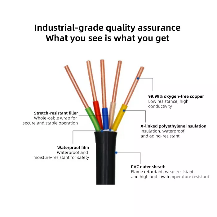 Izolacja (YJ): XLPE zapewnia długoterminową odporność na temperaturę do 90°C i doskonałe właściwości elektryczne, zapewniając wydajną pracę kabla w normalnych warunkach.